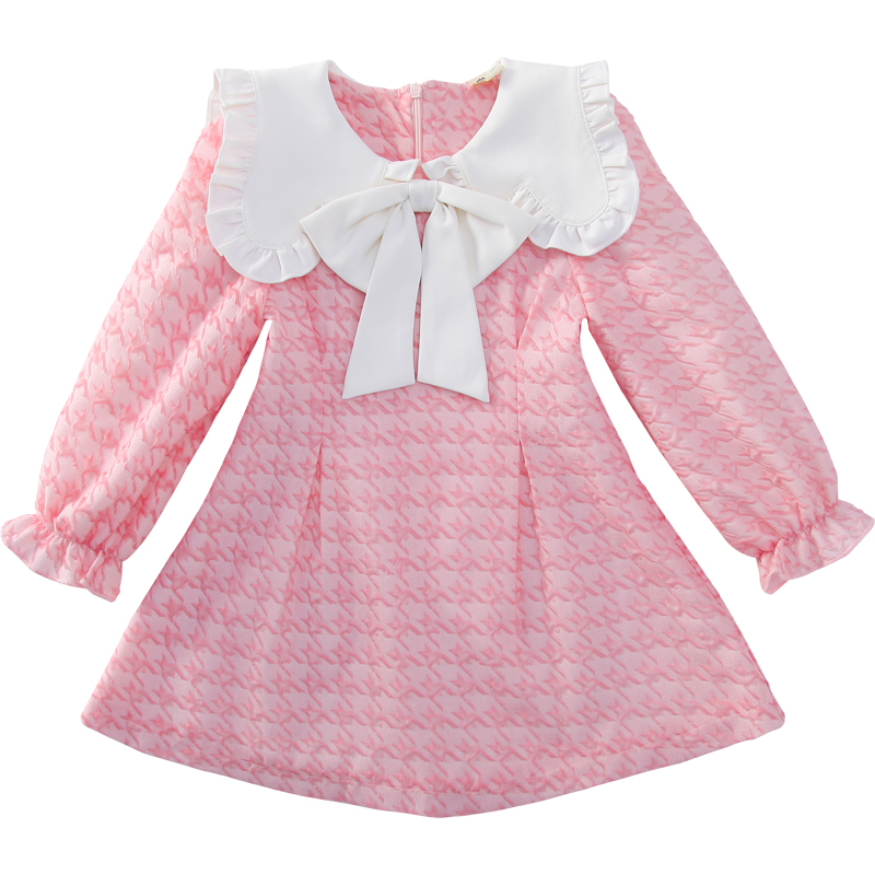 Girls dress autumn children's skirt new long sleeves little girl French sweet bow baby girl princess dress