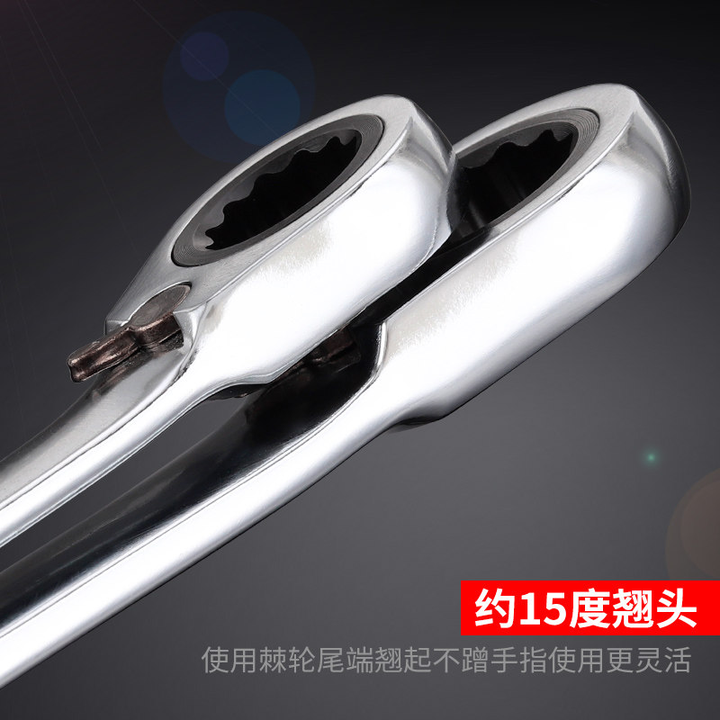 Short handle bidirectional dual-use ratchet wrench adjustable quick wrench plum blossom opening automatic plate hand suit 8-19mm