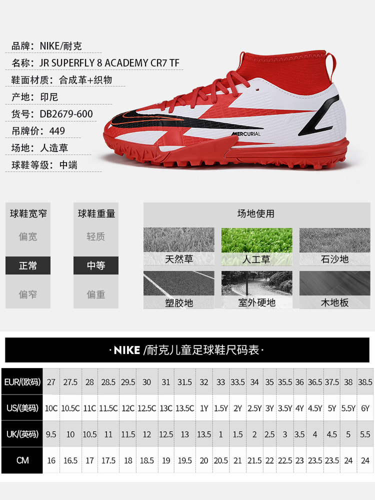 Nike Children's Football Shoes Men's Nike Assassin 14CR7C Luo TF Broken Nails Sneakers Children's Boys Primary School Competition