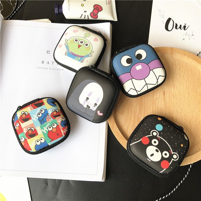 Leather Tattoo Square Mini small number Cartoon headphone Number of packets According to the line charger cute digital finishing box