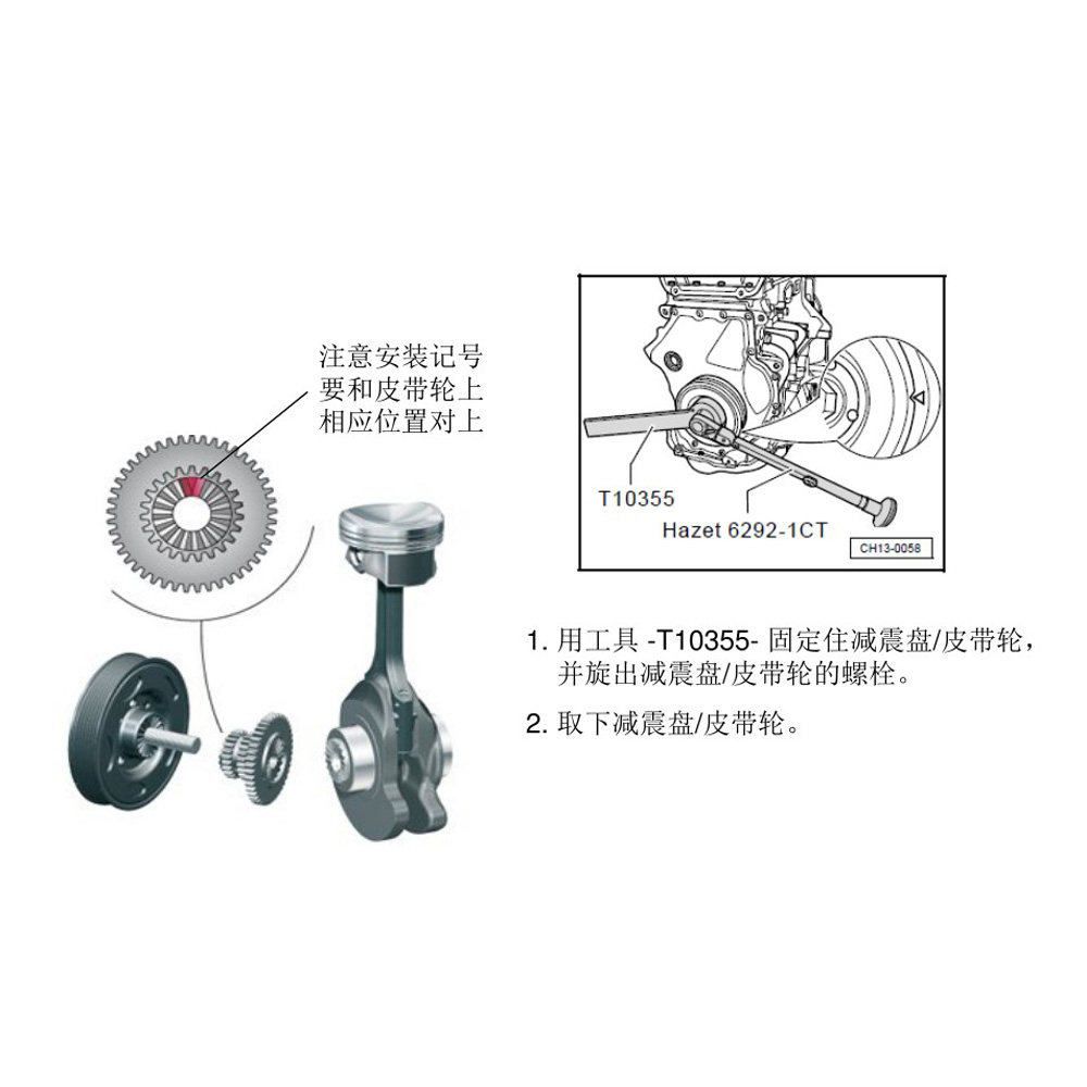EA888 engine crankshaft belt disc fixed wrench T10355 damping disc pulley fixing tool