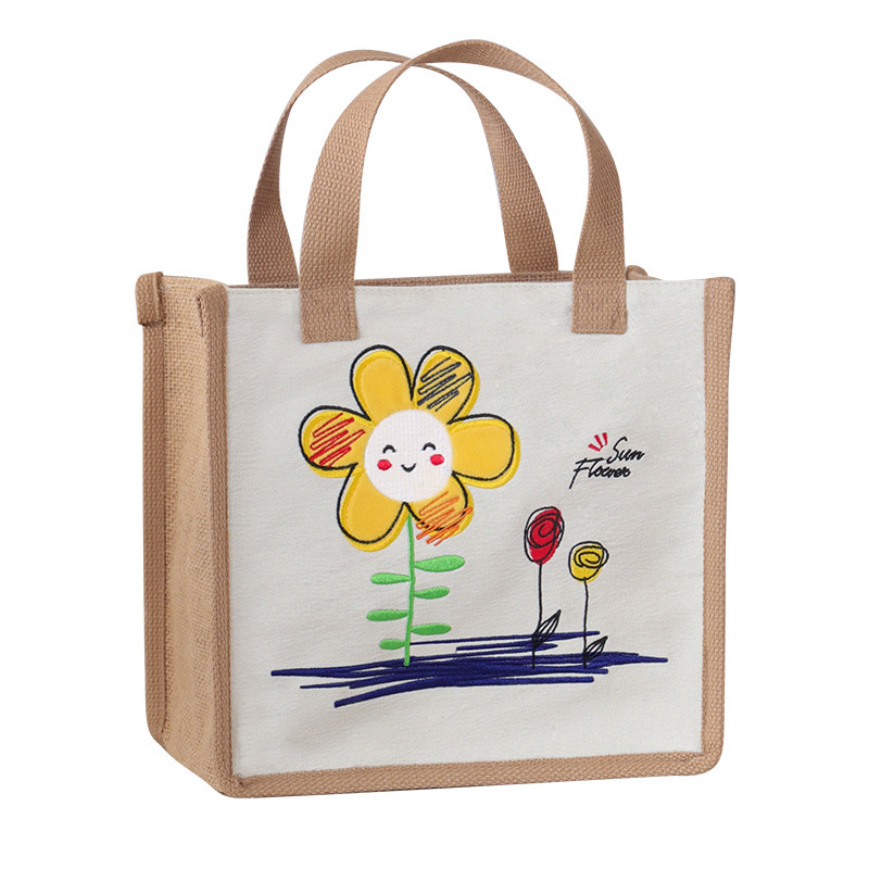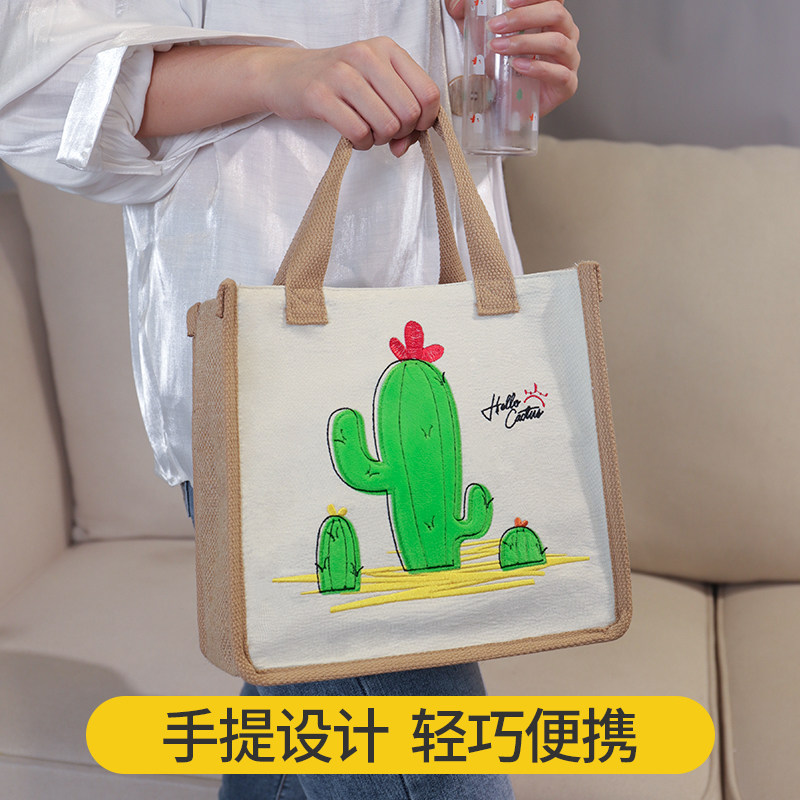 Cactus cartoon tree cotton linen with buckle handbag-sunflower-style cotton linen with buckle hand bag-minimalist cotton linen with buckle handbag-sunflower enlarged cotton linen with buckle hand bag-minimalist increase