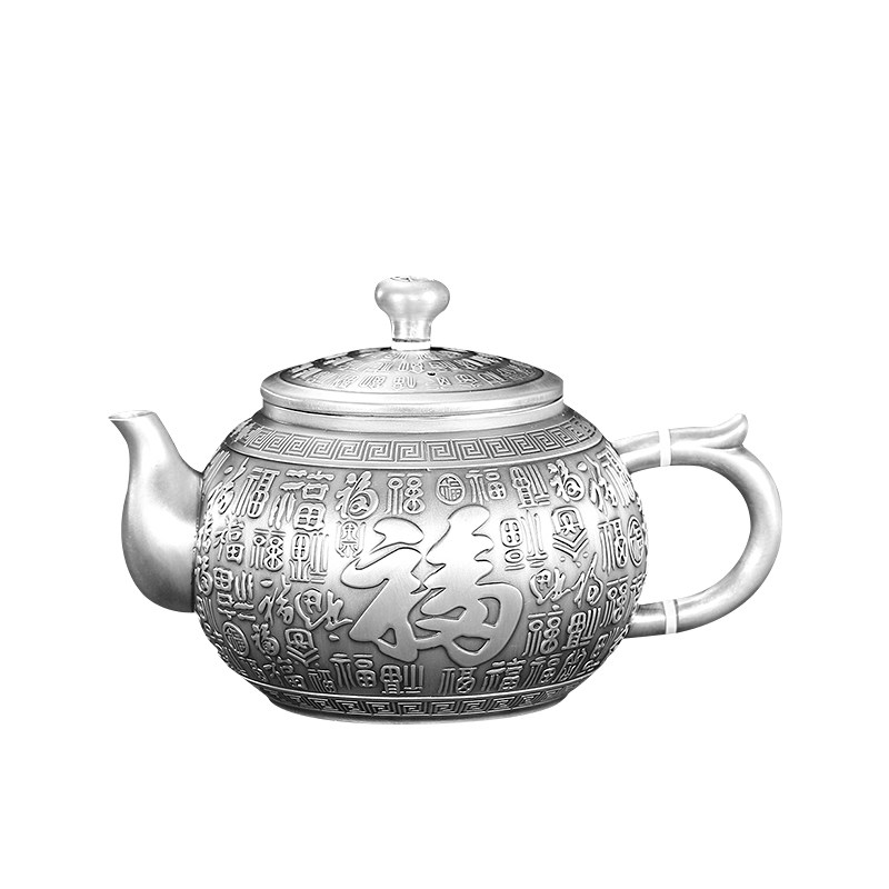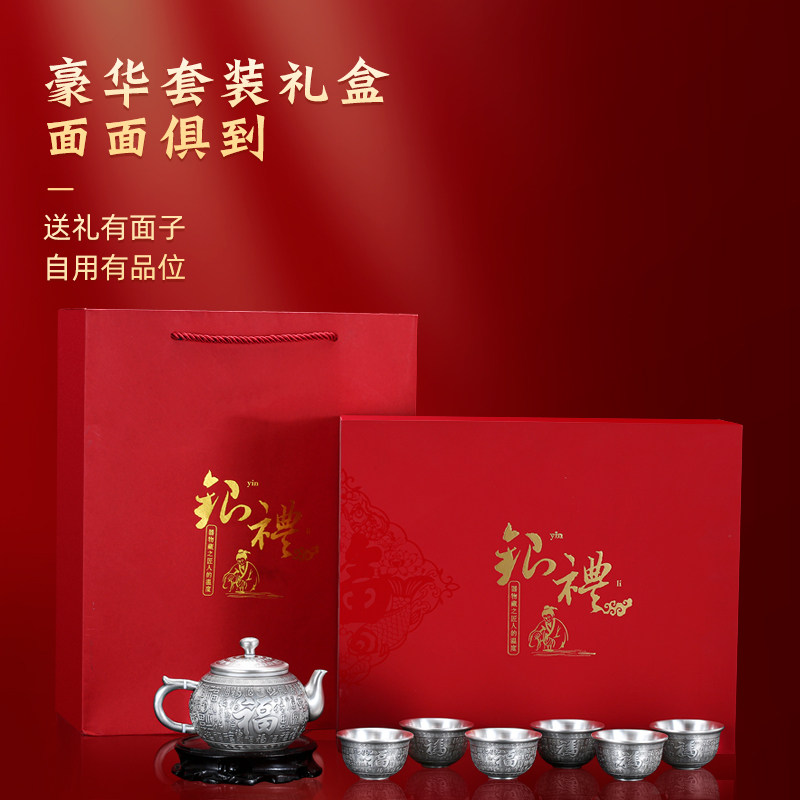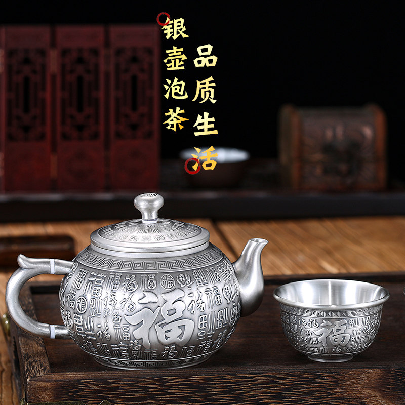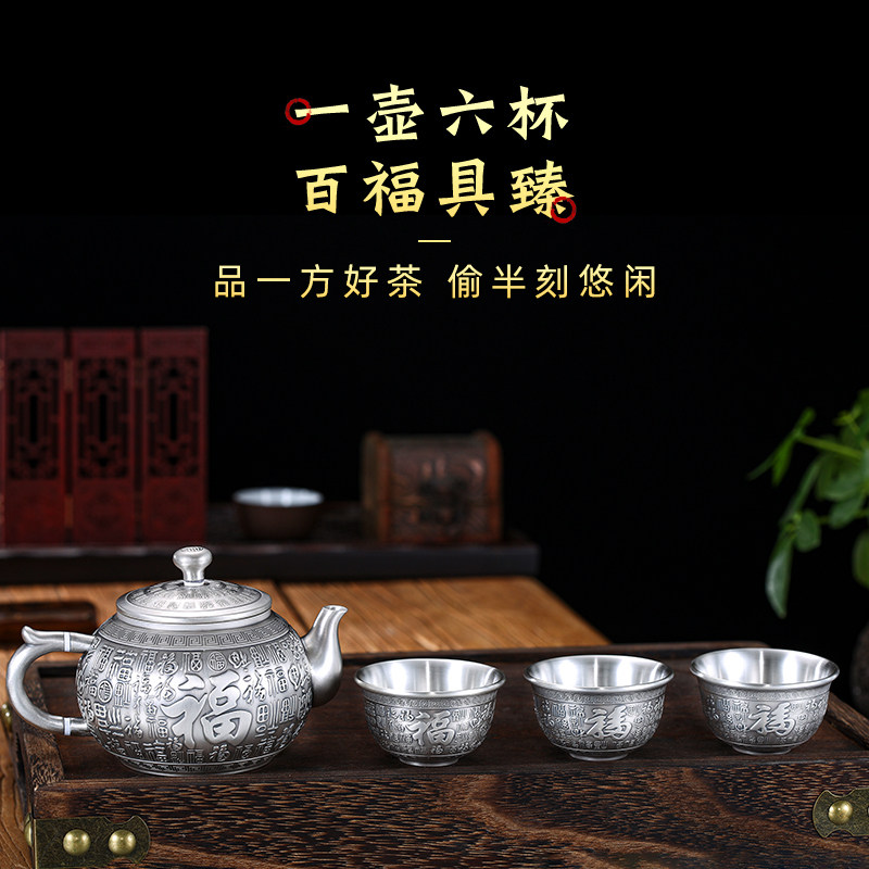 Jiangnan Yinhuan Football Silver 999 Silver Tea Cup Kung Fu Silver Building Tea Pot 7 Piece Set Collection Gift Silver Set