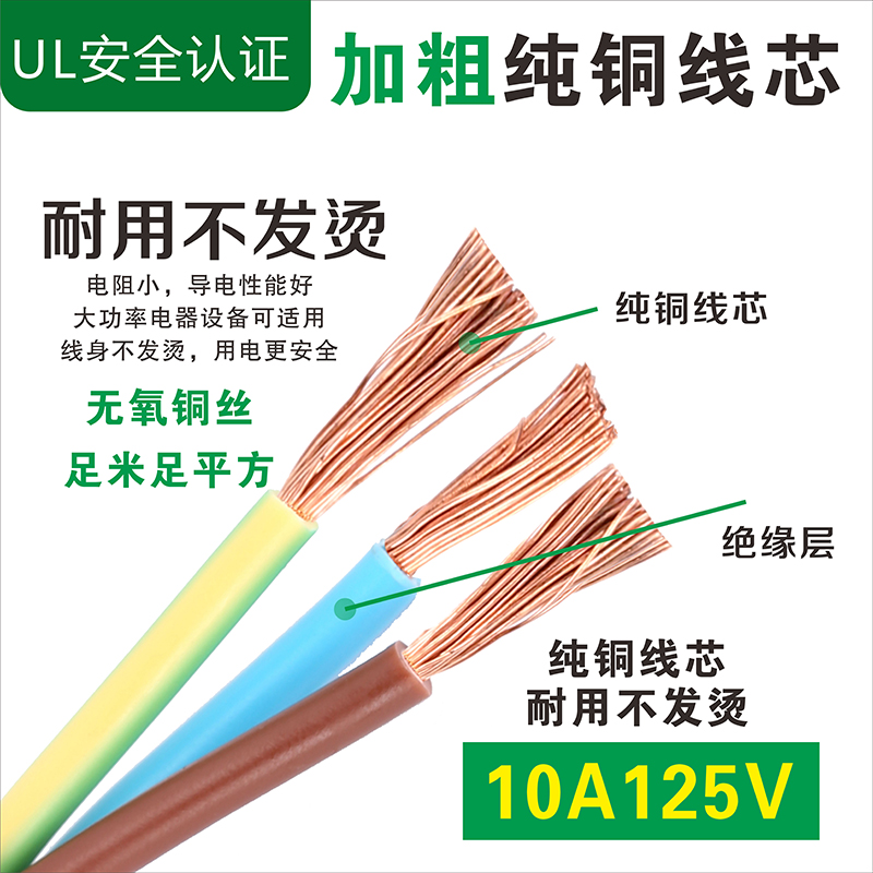 UL certified American power cord three-hole 3-core 0 824 2 08 square 14 16 18AWG American plug wire