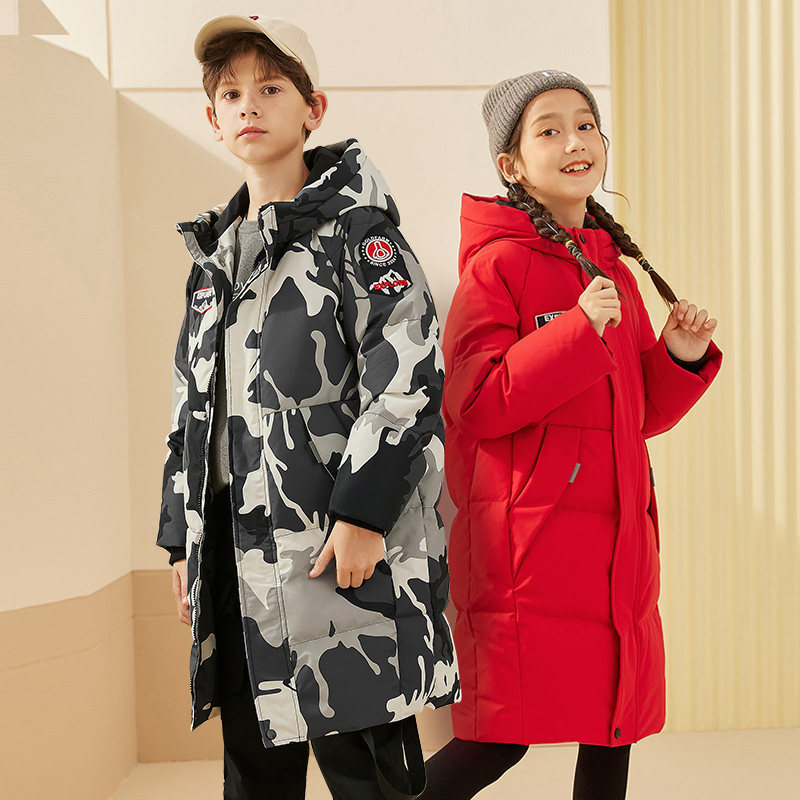 Govan Kids Down Jacket 2021 Boys and Girls Mid-Length Over Knees Middle And Big Kids Teenager Extreme Cold Thick Children's Wear