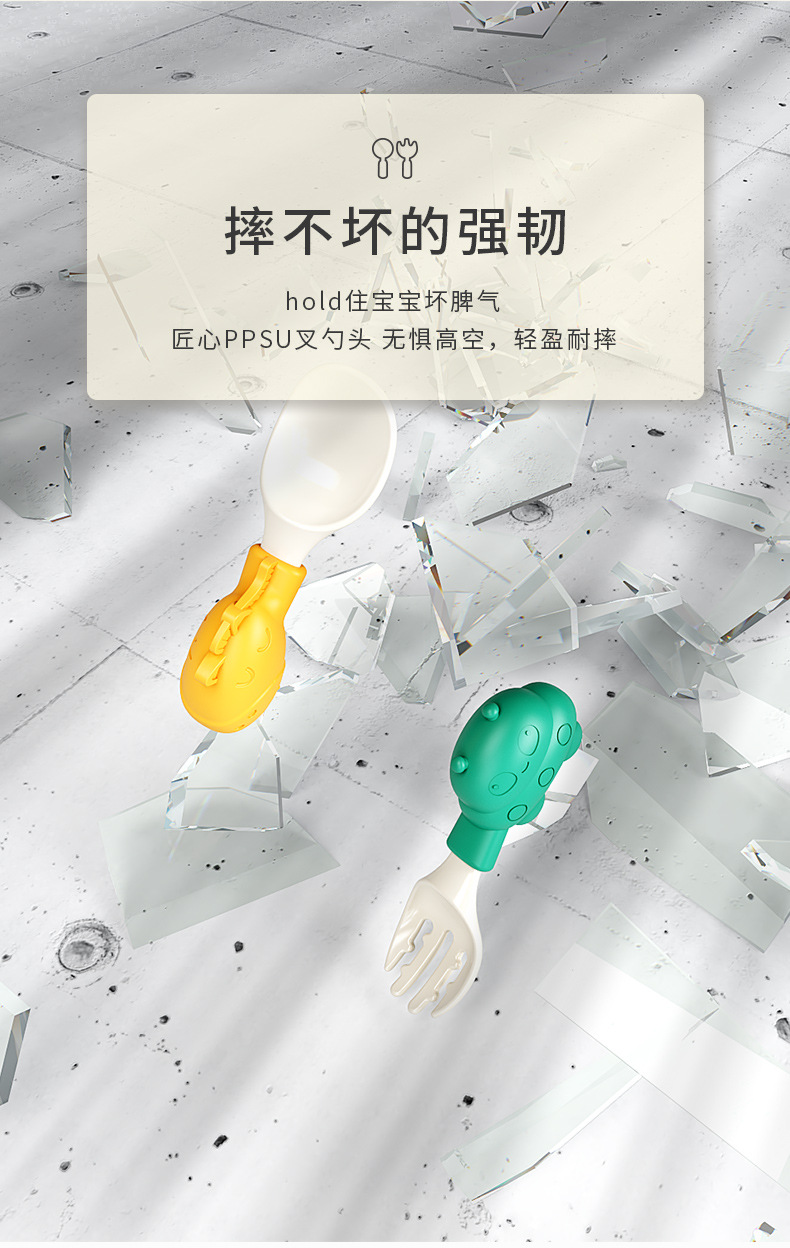 Baby baby learn to eat training spoon one and a half years old self-feeding learning to eat children fork spoon short handle tableware set