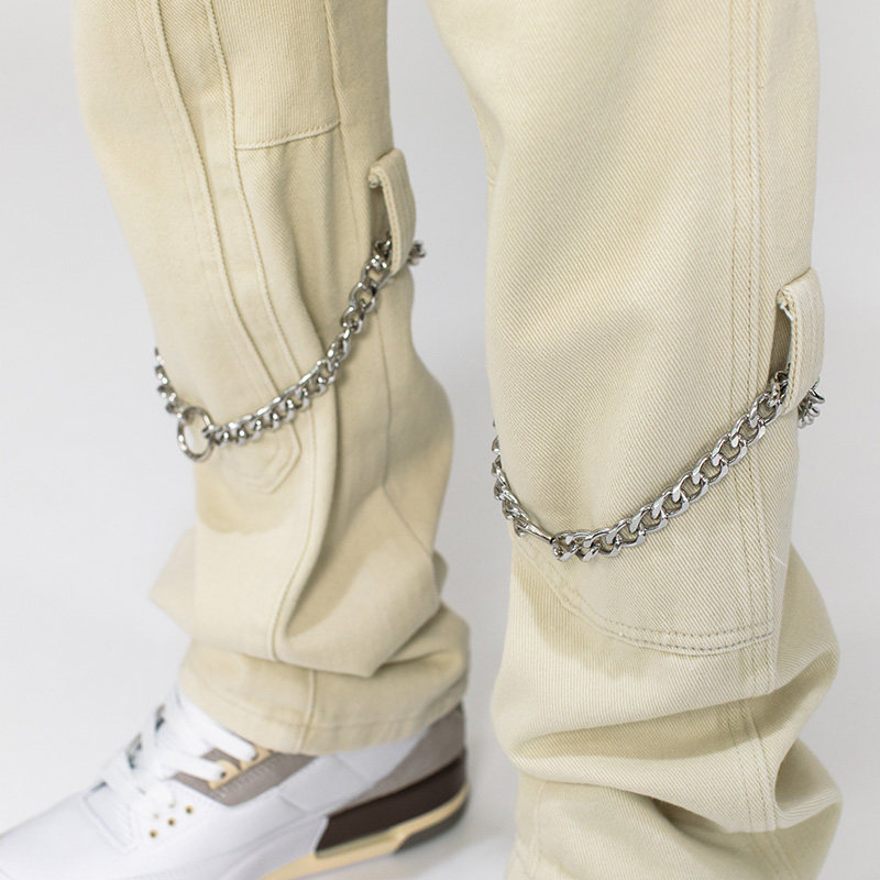 Tide Block American Punk Loose Straight Drum Fit Pants Mans Tide Card High Street European American Hiphop Fried Street Pants
