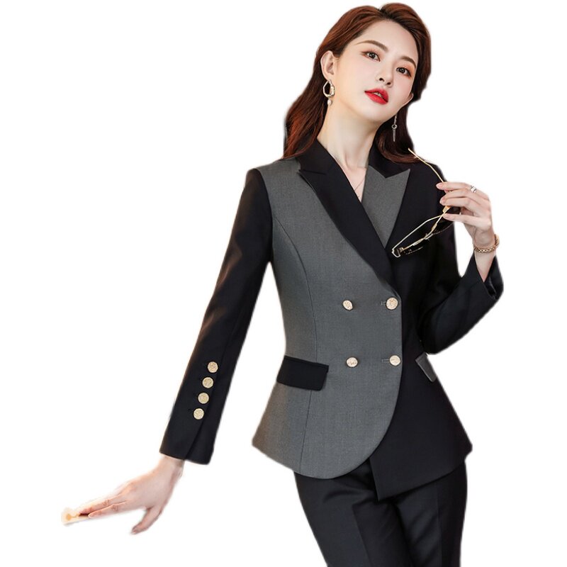 2021 autumn and winter high-end contrast color professional suit suit female suit teacher formal dress teacher work clothes two-piece set