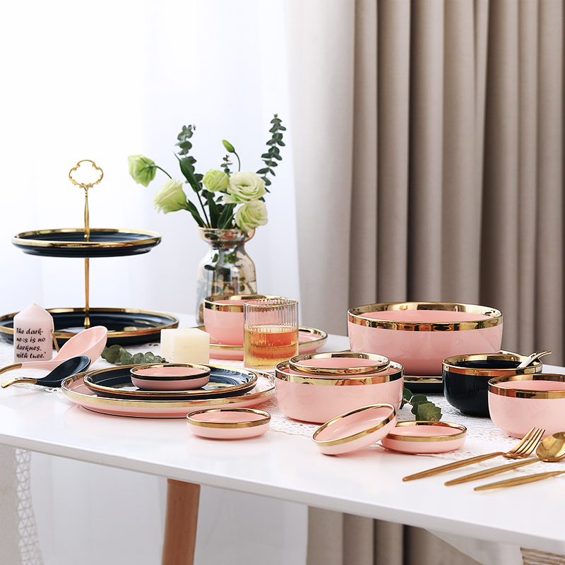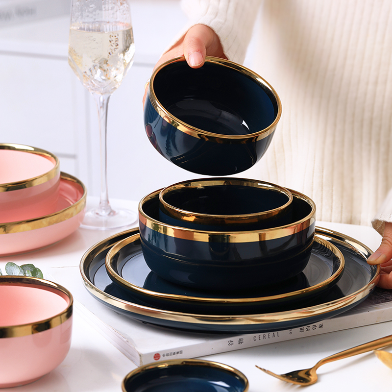 Nordic Phnom Penh thick dishes set home creative light luxury ceramic dishes bowl chopsticks gift housewarming tableware set
