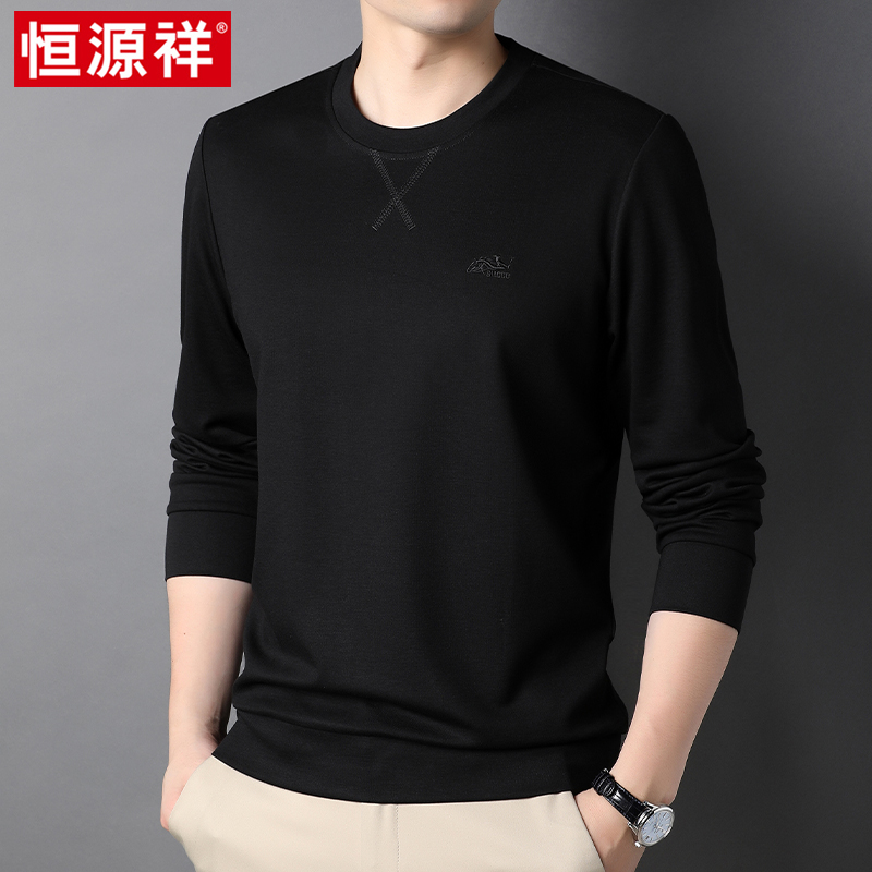 Hengyuanxiang 2021 autumn round neck long-sleeved T-shirt embroidery simple solid color underwear loose casual new top