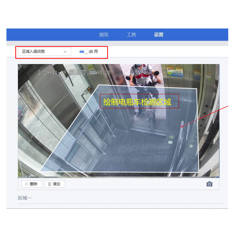 Smart battery car identification camera block car system anti-electric vehicle enter the elevator alarm prohibits push into intercom