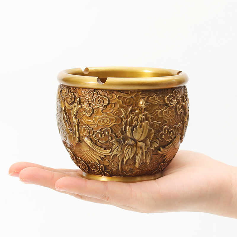 Ticket a pure copper dragon phoenix cigarette ashtray Longfeng smoke pure copper ashtray shaking headline