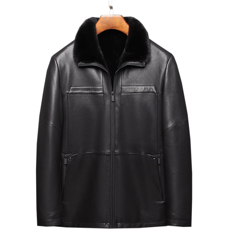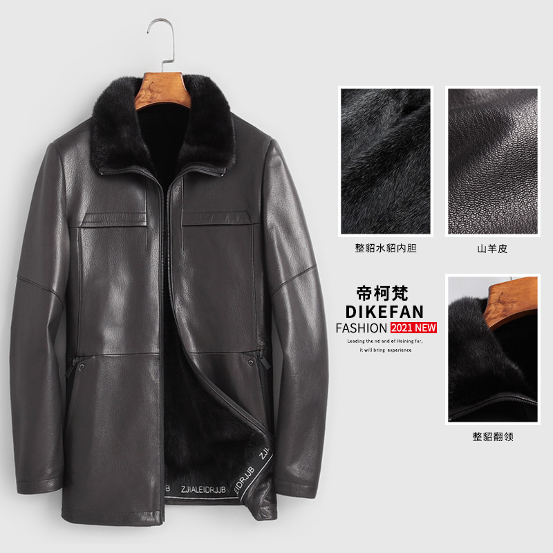 New whole mink mink inner urchin Haining genuine leather jacket men's fur all-in-one medium-length mink coat business jacket