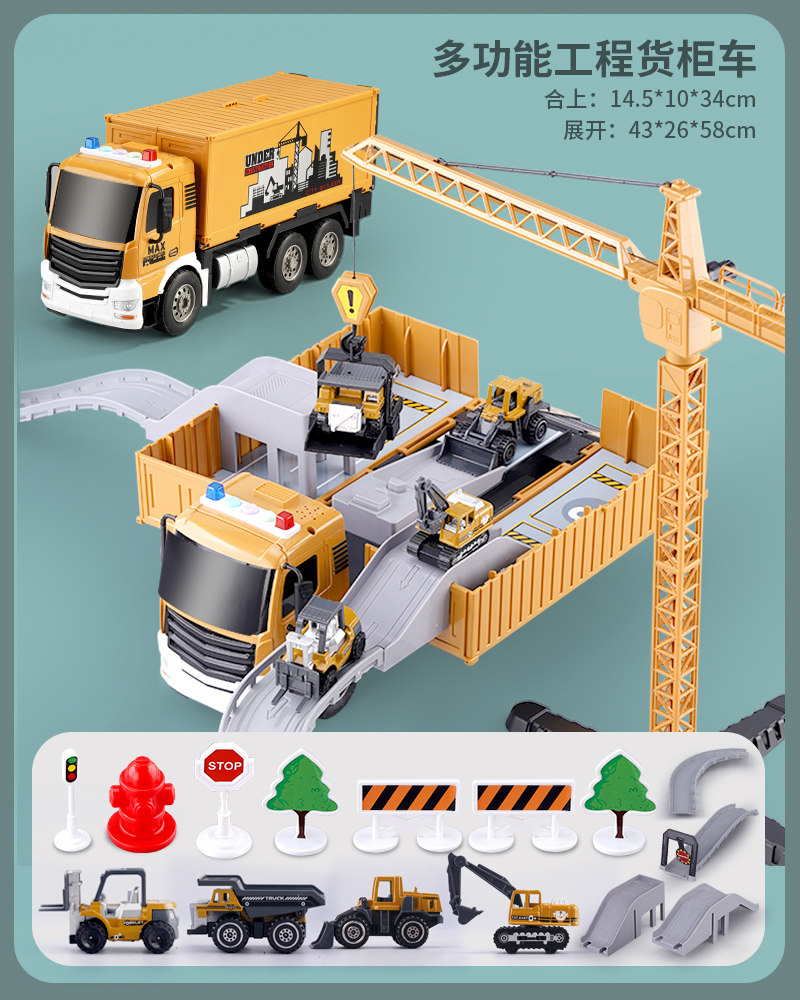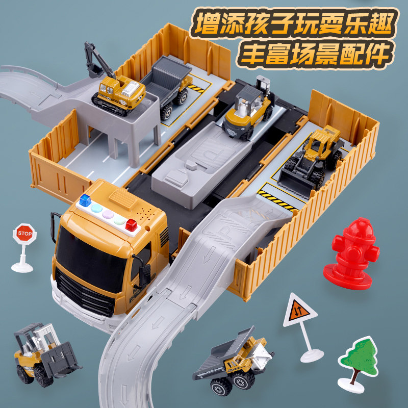 Engineering car large baby simulation alloy container toy boy car suite model Six 1 children's day gift
