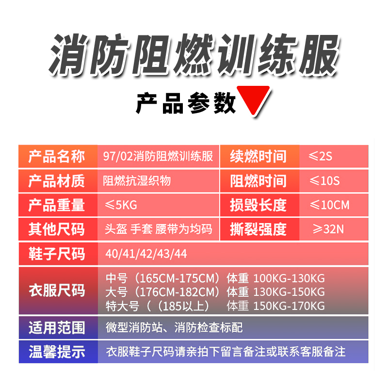97 paragraphs (blouses pants) 97 suits (97 helmets 97 shoes) 02 Fire Suits (Blouse Pants) 02 Suits 97 Boots (Common) 02 Suits