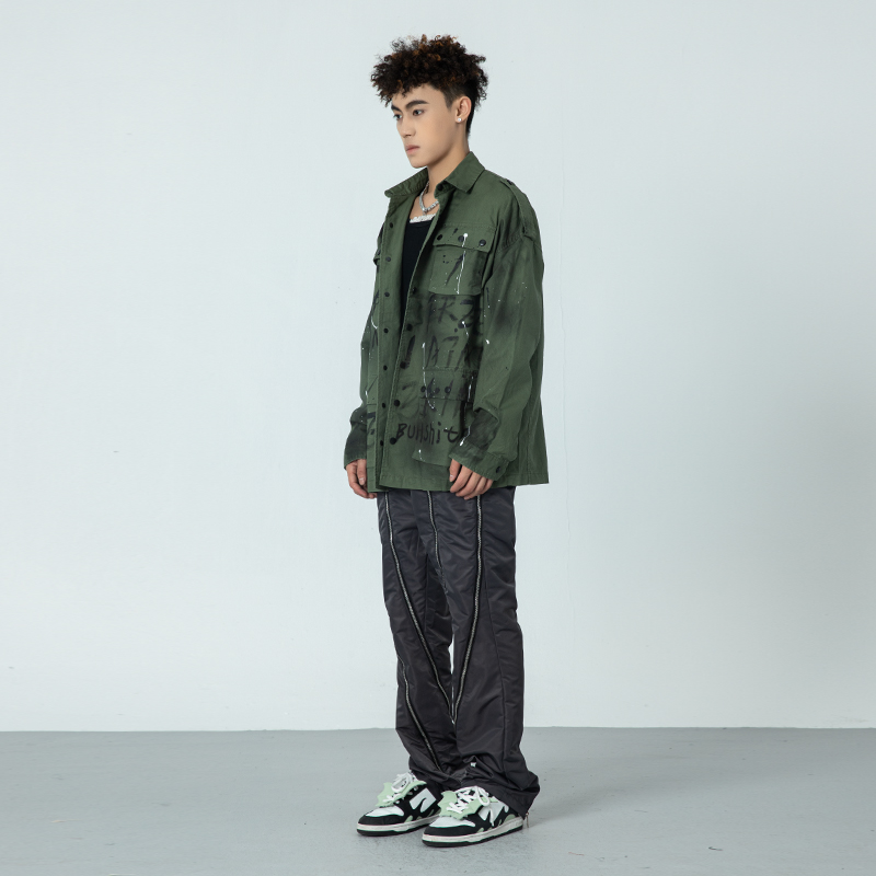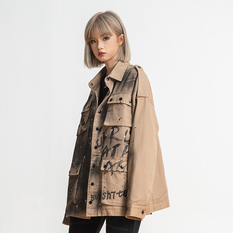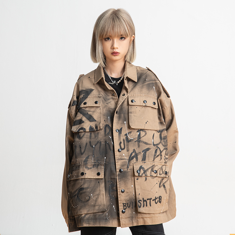 New Factor Tide Card 21AW Art Graffiti Tooling Jacket Man Spring Autumn New Loose Casual Jacket Lovers