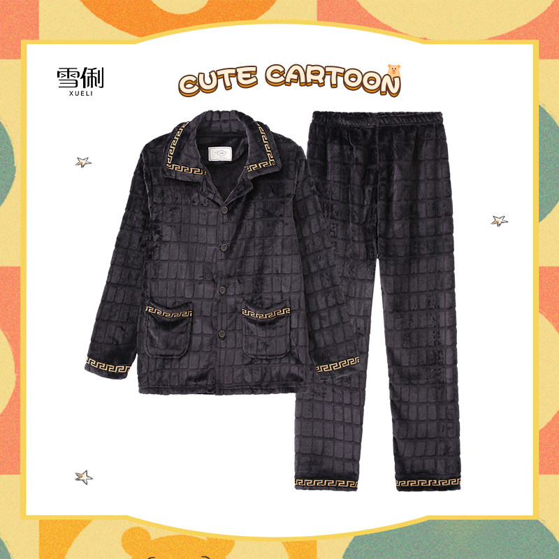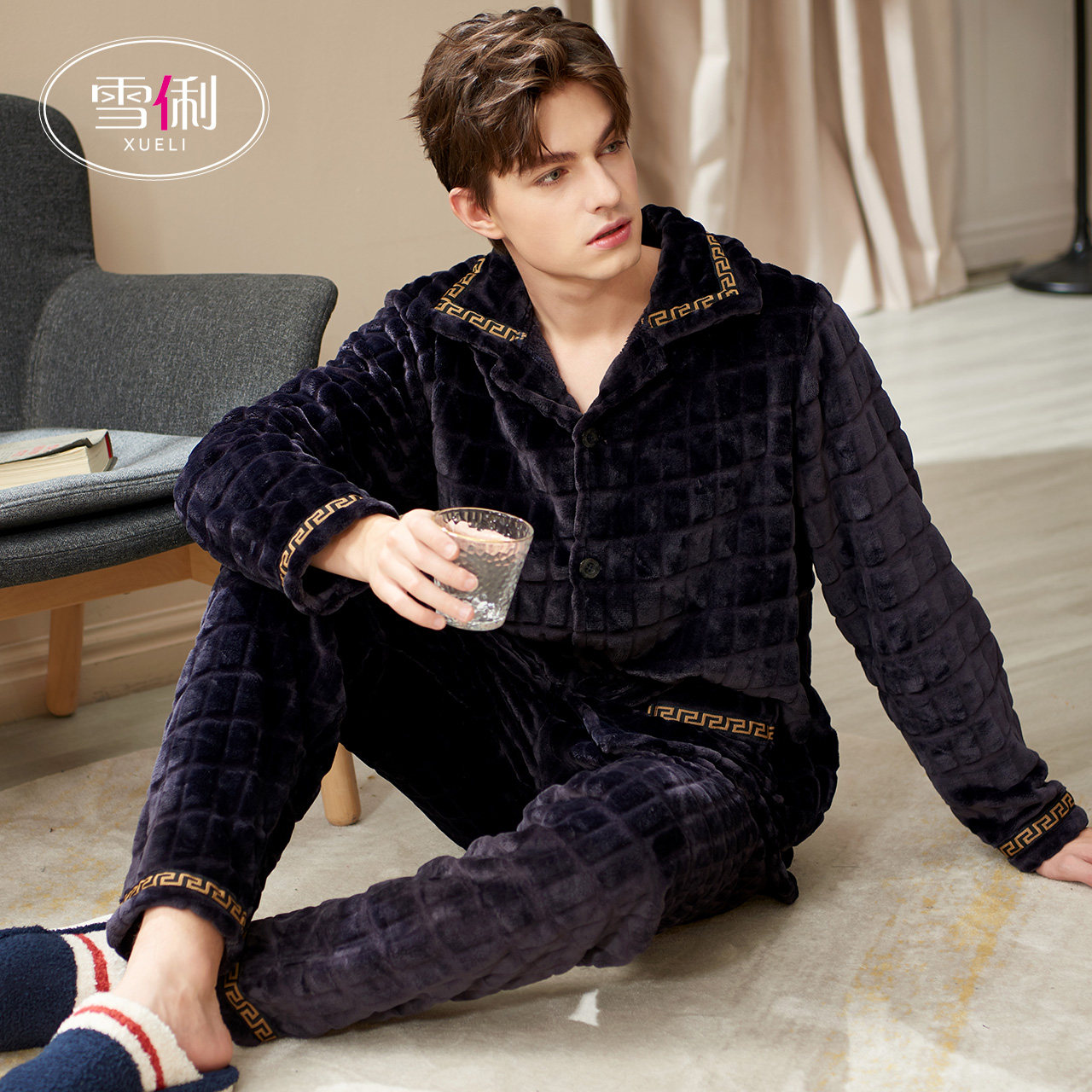 Snow Li pajamas men autumn winter coral fleece thick flange home wear new products simple 2021 set