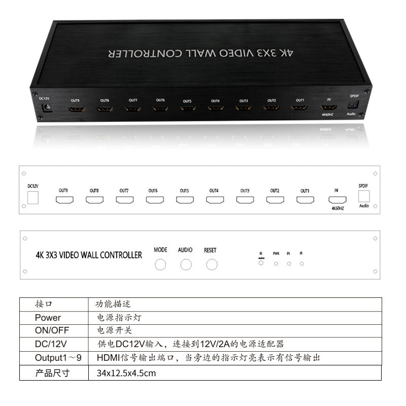 4K60HZ high-definition HDMI film liquid crystal screen splicing machine matrix 1 in 9 out of split screen controller splicing case
