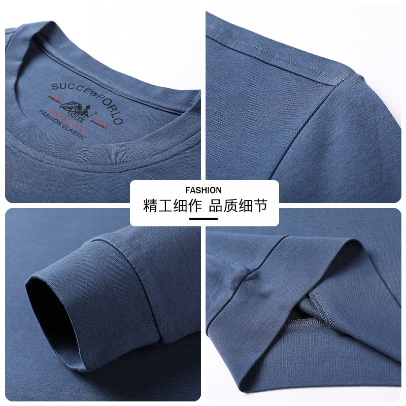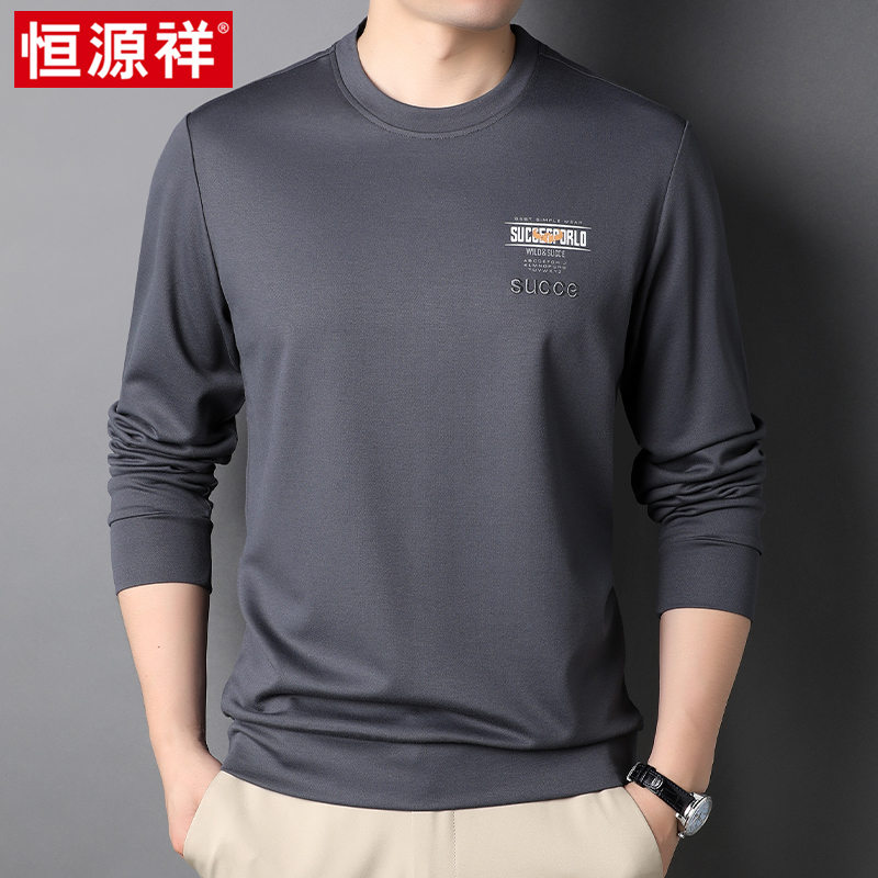 Hengyuanxiang solid color embroidered long-sleeved T-shirt 2021 autumn new round neck underwear middle-aged dad casual top