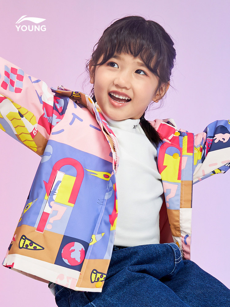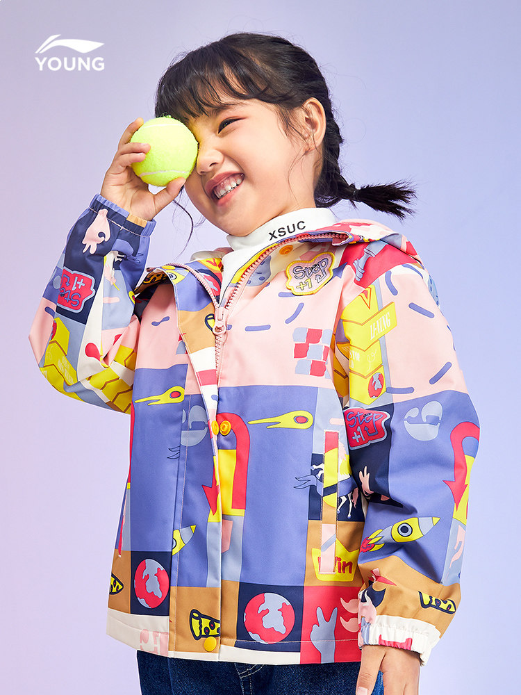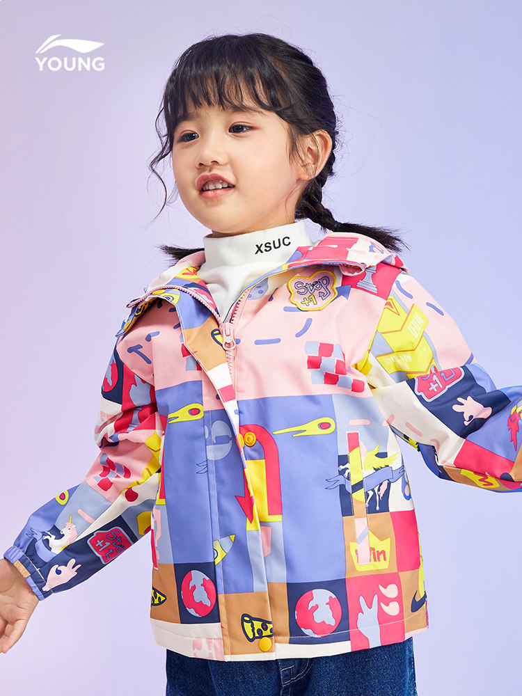 Li Ning female children Sports Life series plus velvet wind and moisture permeable sports windbreaker 2021 autumn YFDR306