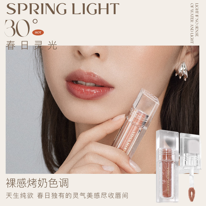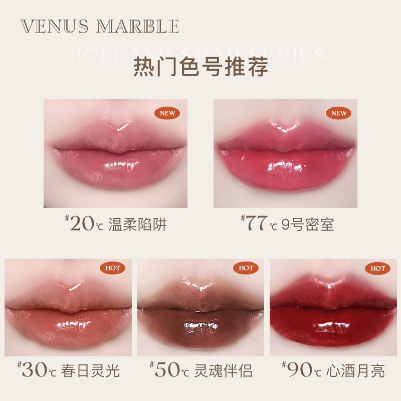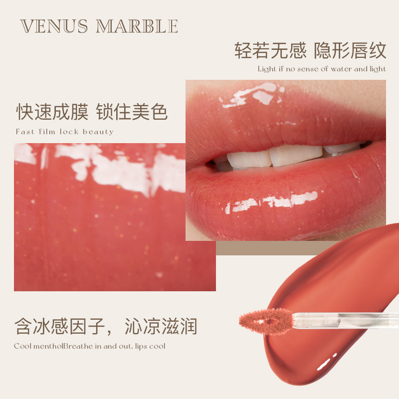 (New Color Listing) VENUS MARBLE Ice Island Stone Lip Glaze Mirror Water Light Moisturizing Whitening Lip Gloss VM