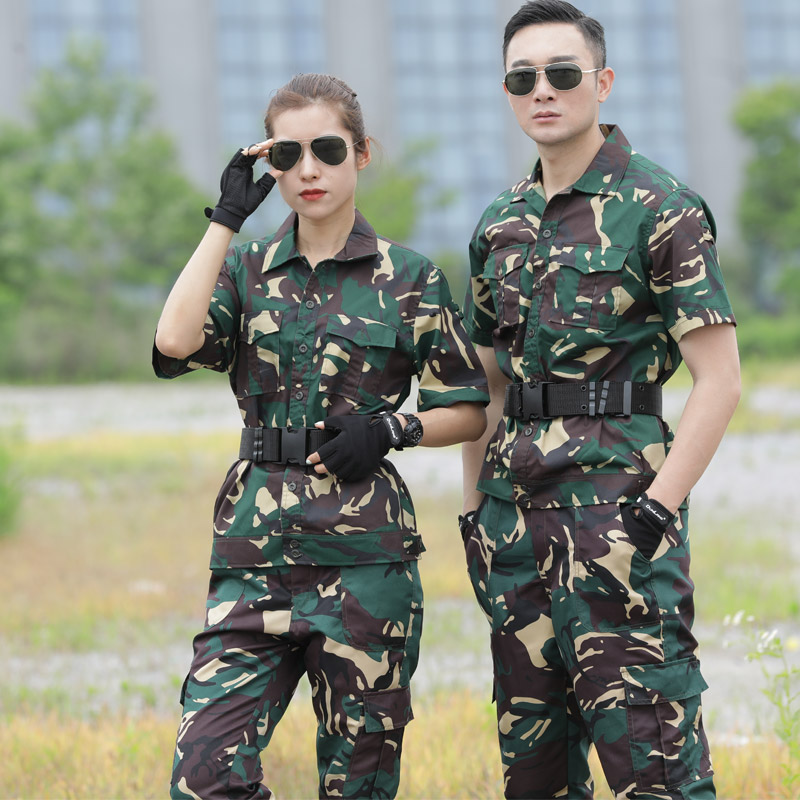 Hunter camouflage suit summer short-sleeved suit men and women thin section overalls new military training camouflage suit combat training uniform