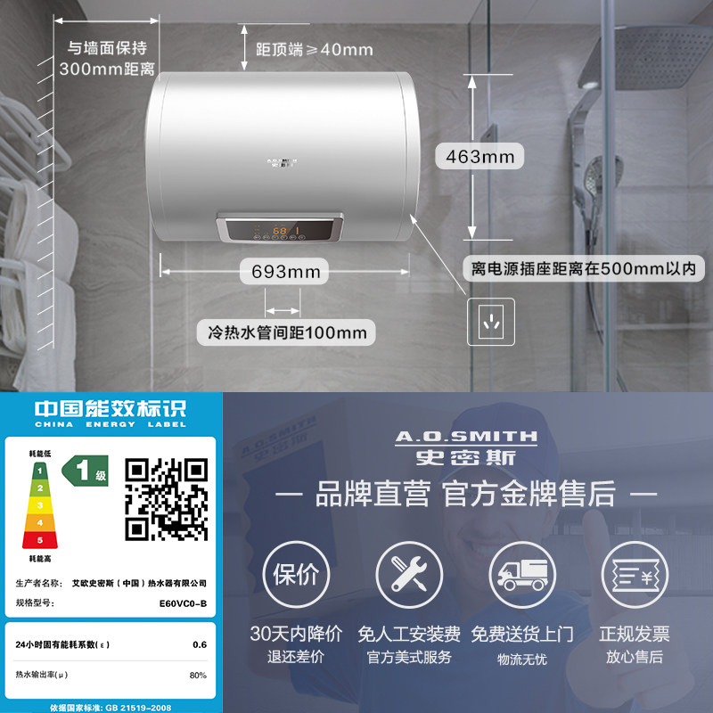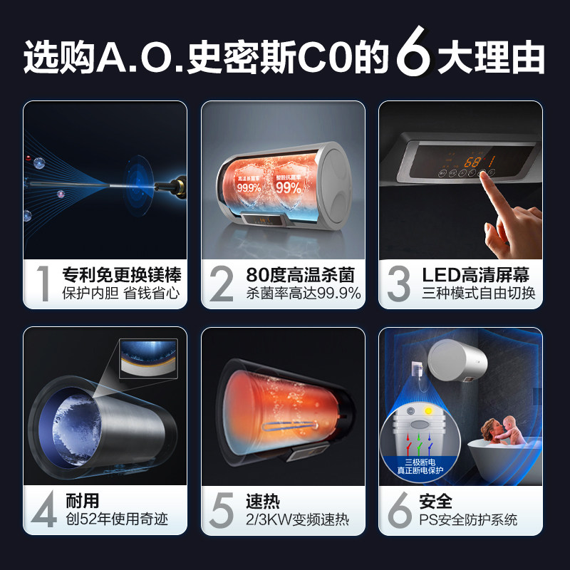 (Smith 888) Free of change of magnesium stick E060 Intelligent speed heat energy saving domestic electric water heater bath 60 80 liters