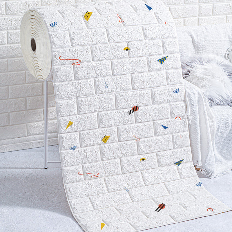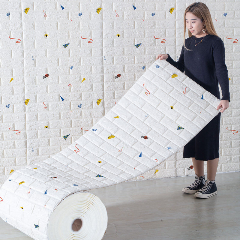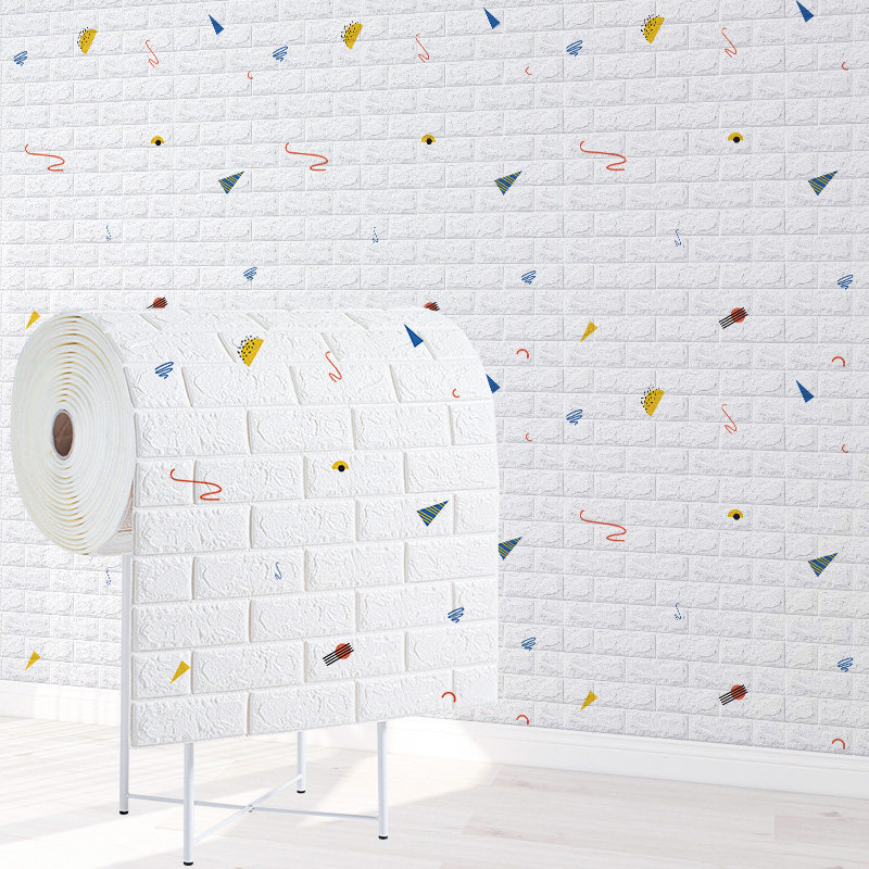 Wallpaper self - adhesive children 3D bedroom background wallpaper wallpaper mesh red foam brick cartridge anti - collision sticker