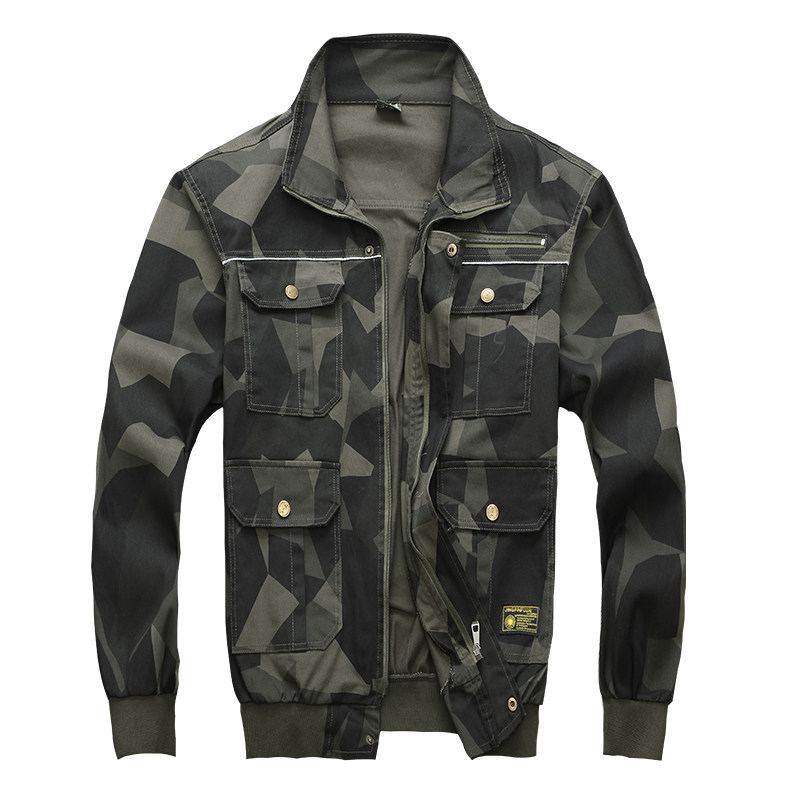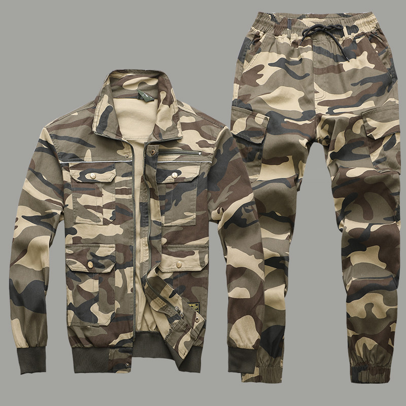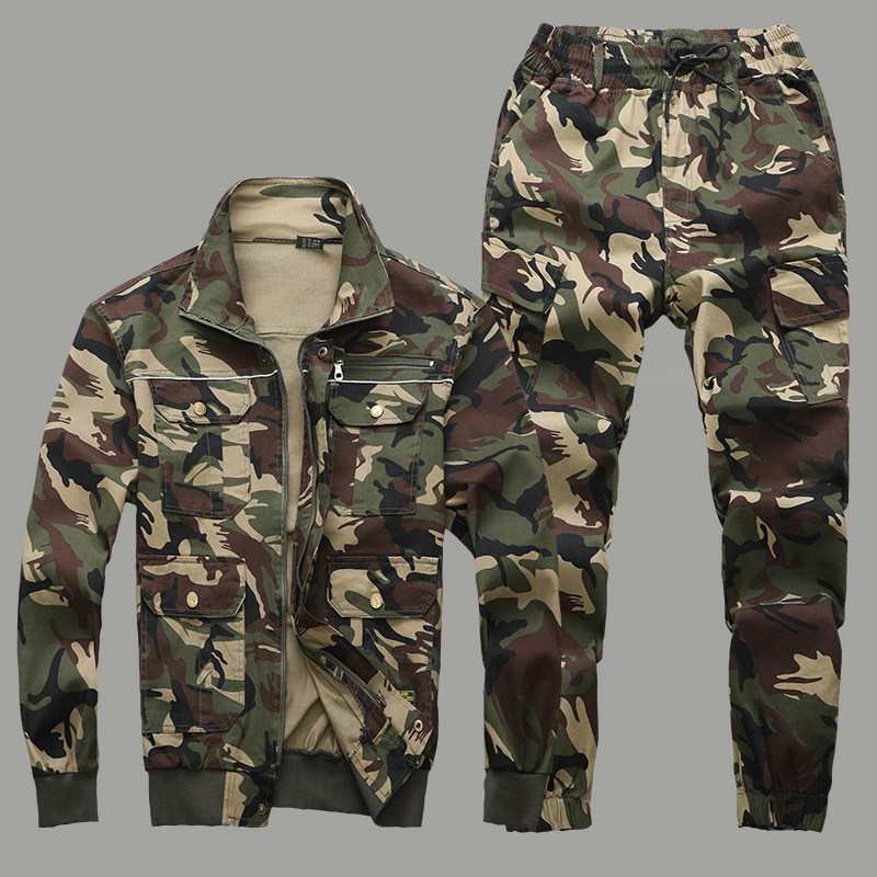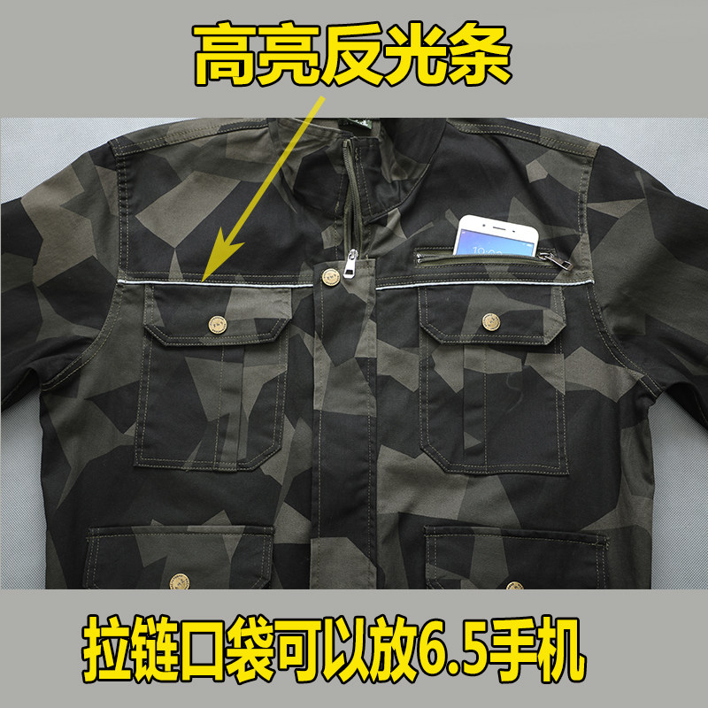 Spring and autumn pure cotton stretch camouflage suit men wear-resistant anti-scalding welding suit labor insurance clothing auto repair reflective strip overalls