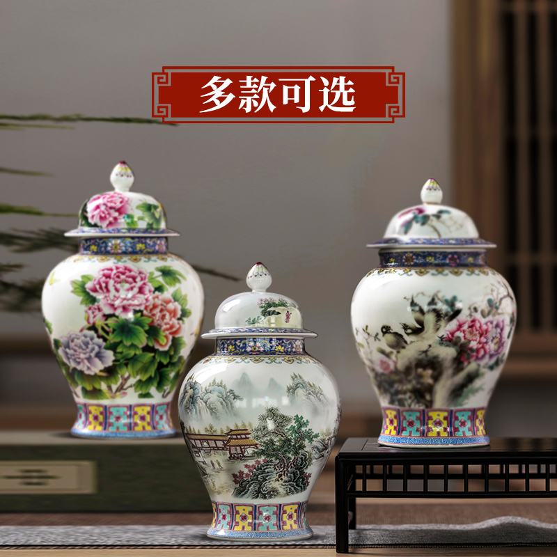 New Chinese classical Jingdezhen ceramic general tank model cabinet decoration living room wine cabinet window retro decoration