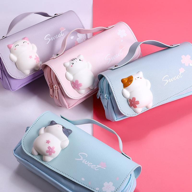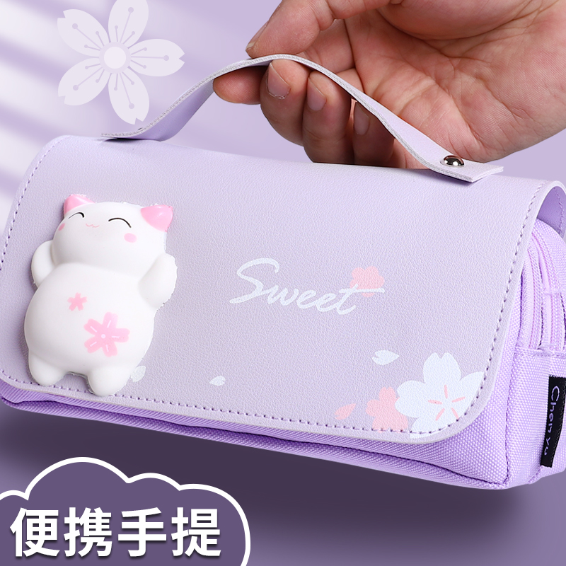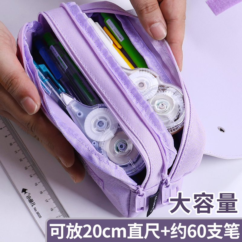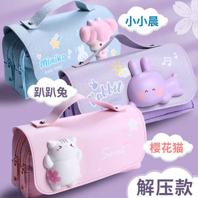2021 new decompression pen bags ins and day girls junior high school large capacity multifunction writing case cute girl heart lead pencil case pencil case canvas high face value stationery bag tennis red pop