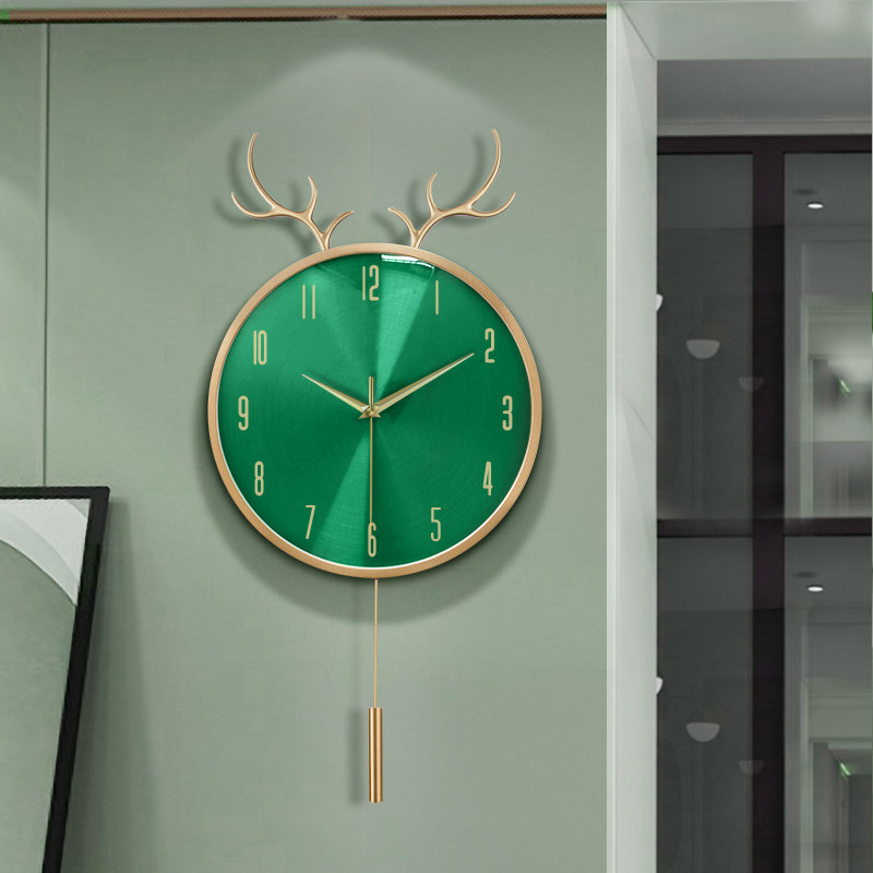 Hanging Clock Living Room Home Fashion Pure Copper Deer Head Watch Personality Cartoon Creativity Nordic Dining Room Hanging Wall Quartz Clock
