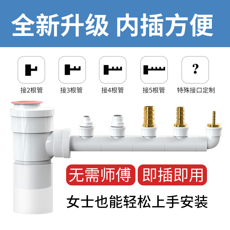 75 Interpolated Kitchen Sink Dishwasher Water Purifier Small Kitchen Treasure Washing Machine Two-in-one Sewer Pipe Tee Deodoro