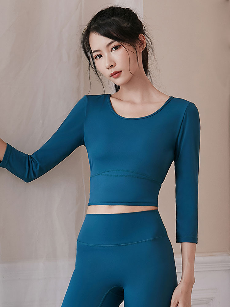 Women's autumn and winter yoga clothing tops with chest pads, sexy, beautiful back, temperament, thin, short, professional sports and fitness, three-quarter sleeves