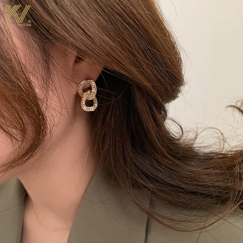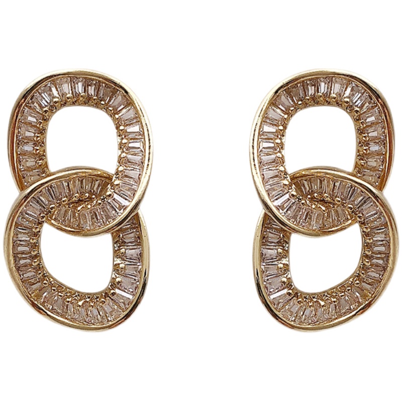 Circle Rings Earrings Women's Unique Design Sensation High-end Zircons Silver Needle Earrings South Korea Fashion Temperament Cirque Earpin Pendant