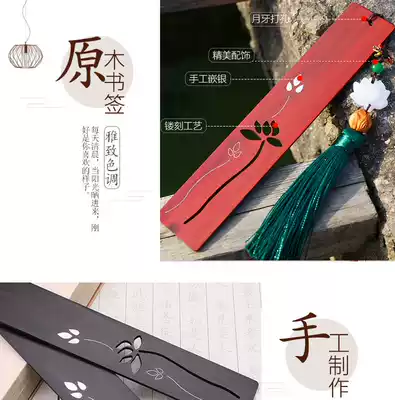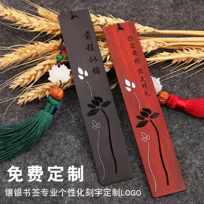 Classical inlaid sterling silver mahogany bookmark gift box set exquisite tassel Forbidden City cultural creation Chinese style hollow Lotus Ebony Ebony wooden custom lettering souvenirs for teachers and classmates graduation gifts