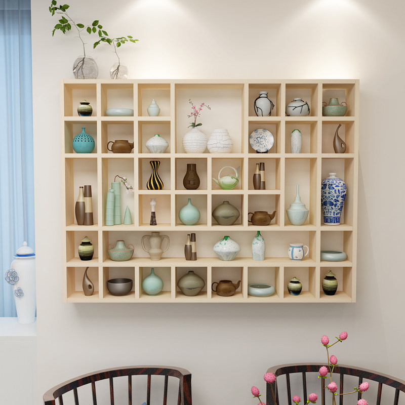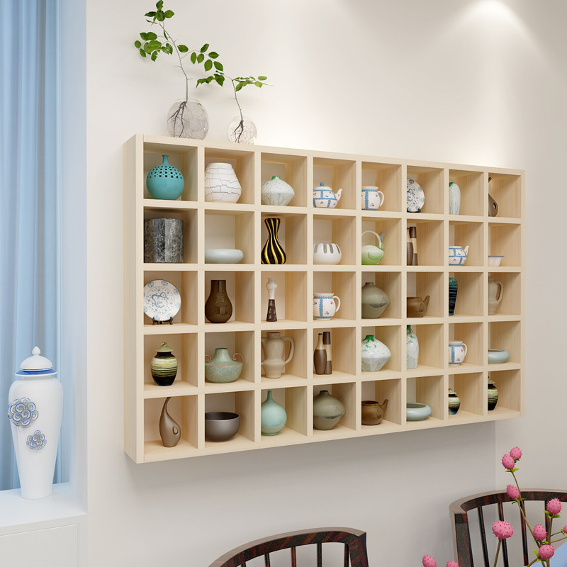 Set to make solid wood Lattice Shelf Wall Shelve wall Wall-mounted Cabinet Teapot Cup Leaf show Dolomatloft ancient shelf