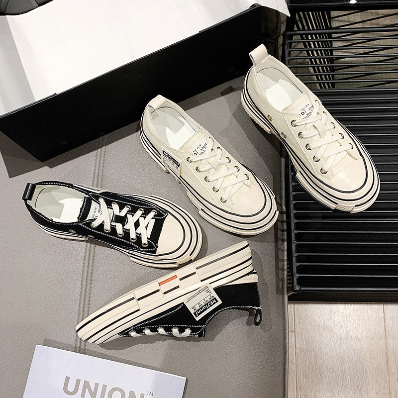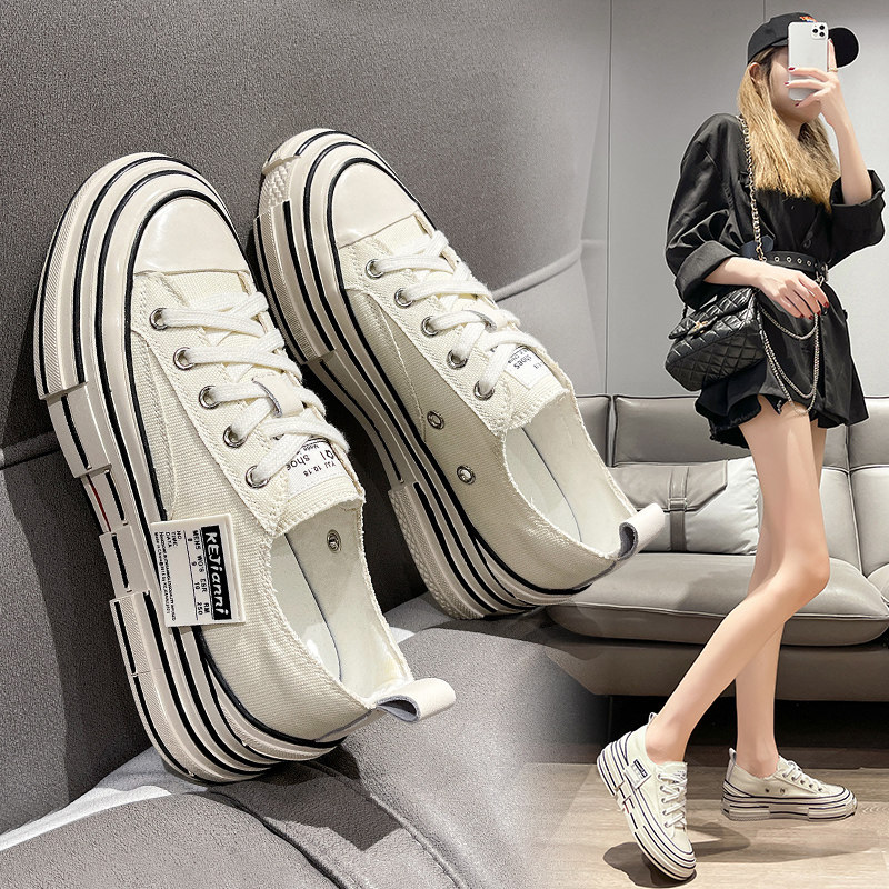 Increased canvas shoes 2022 new female shoes thick soles small white shoes in super fire beggar shoes casual plate shoes
