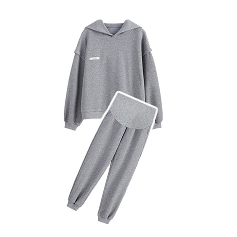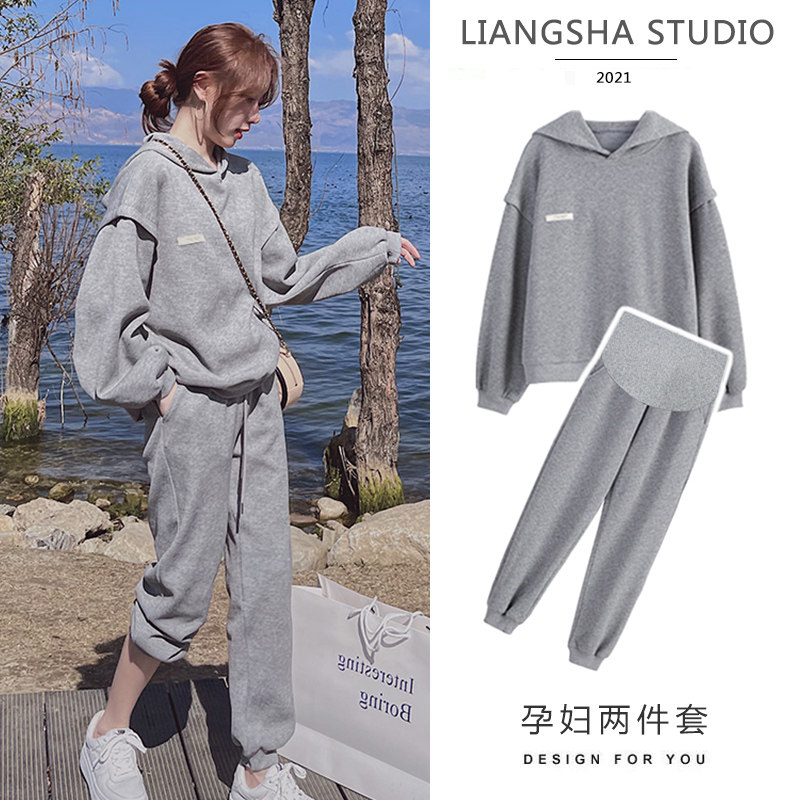 Pregnant women autumn pink suit loose and thin sweat pants thick cotton T top pregnant women's leggings sweat pants age reduction two-piece set