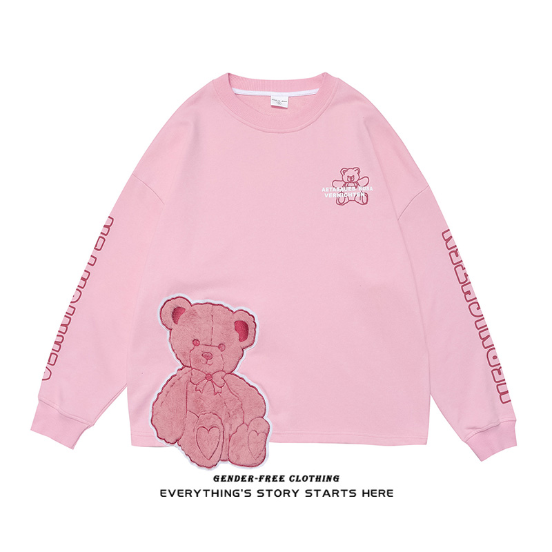 ZOROHOM tide brand solid color flocking broken edge bear round neck with casual top men and women loose pullover spring and autumn shirt