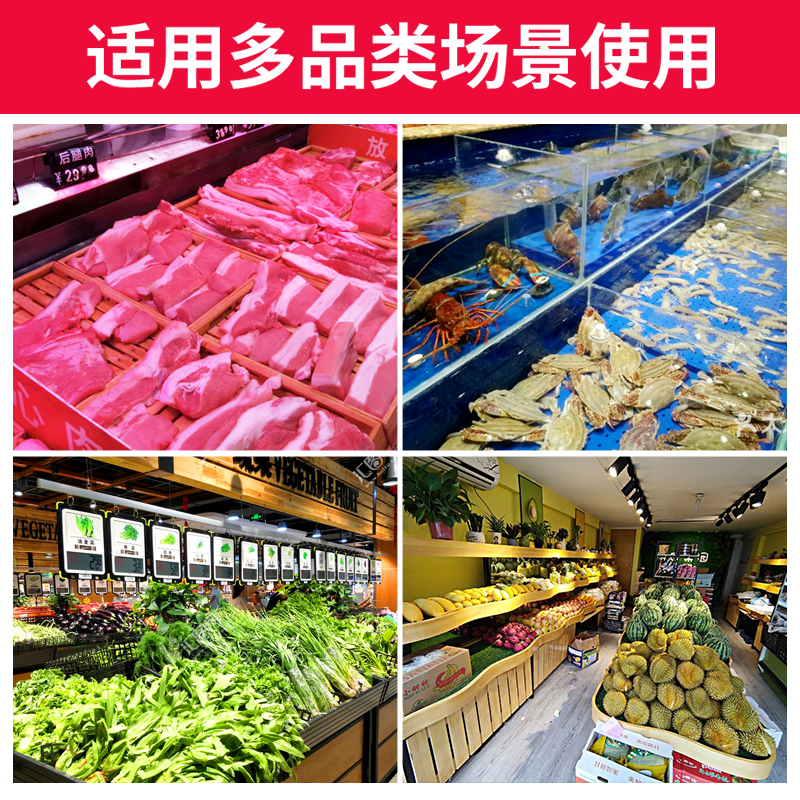 Fresh lamps led cold meat special market supermarket sell pork grain vegetables fruit and meat showing lamp