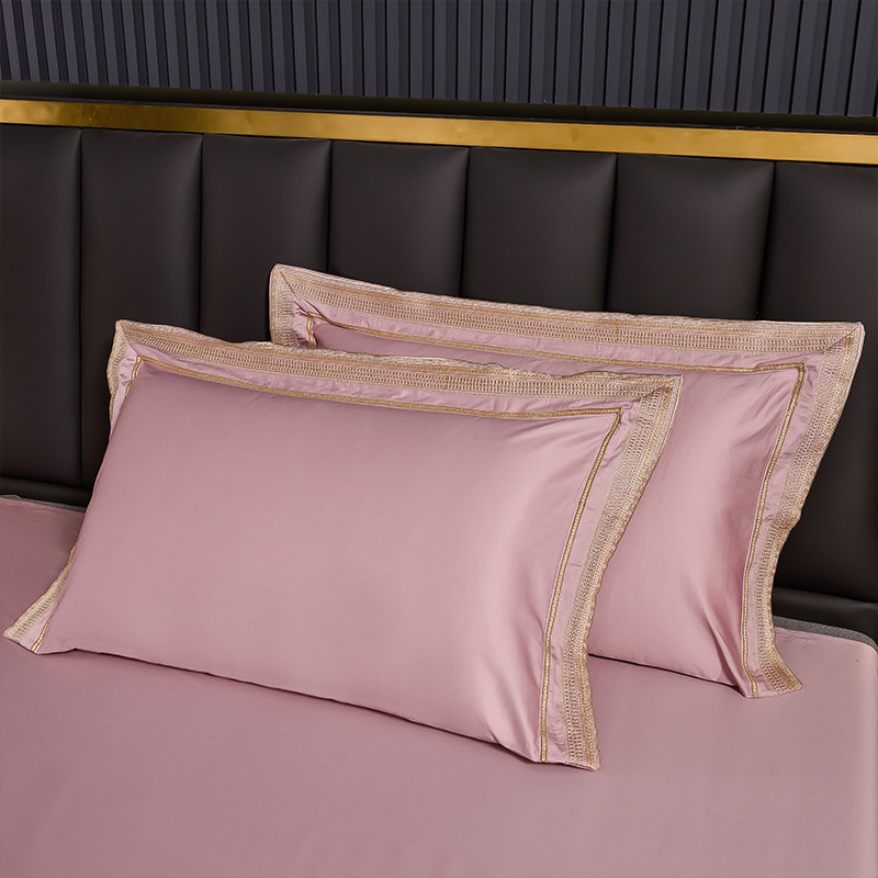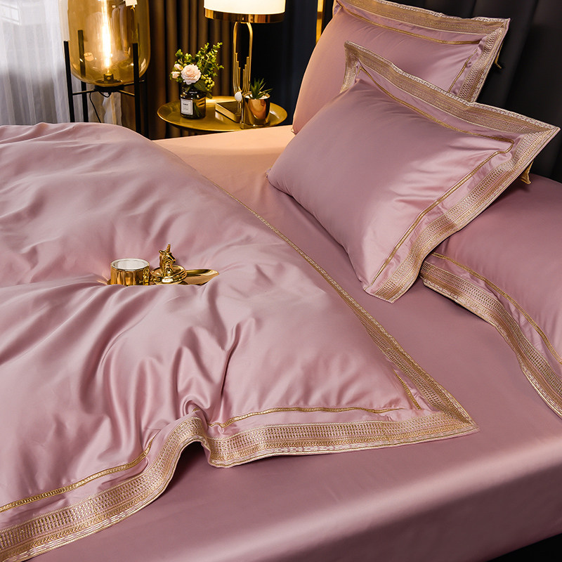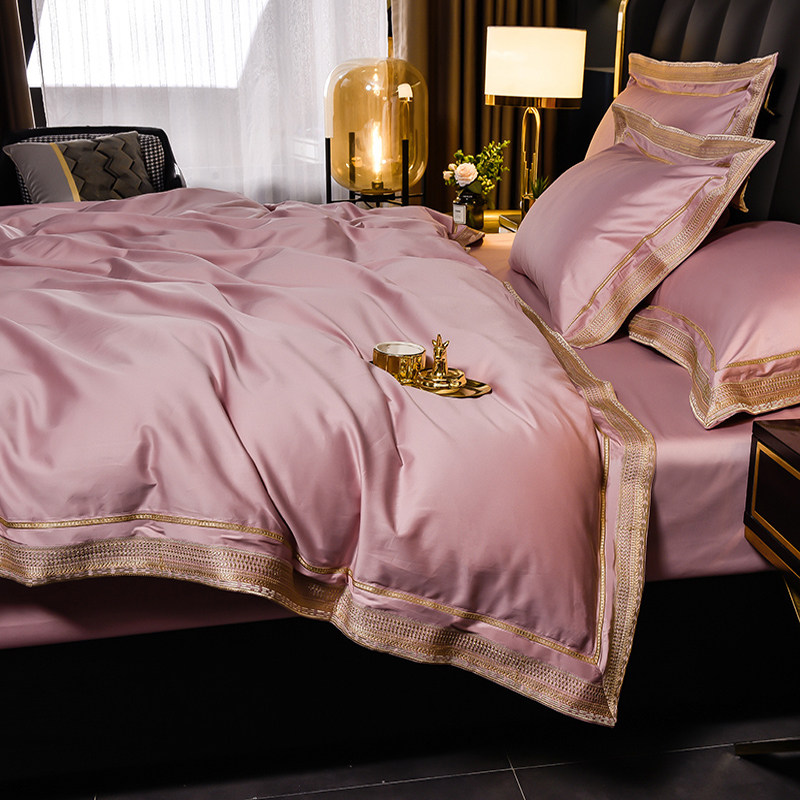 Light luxury simple style pure cotton 200 counts princess style four-piece set solid color cotton quilt cover naked sleeping sheets bedding