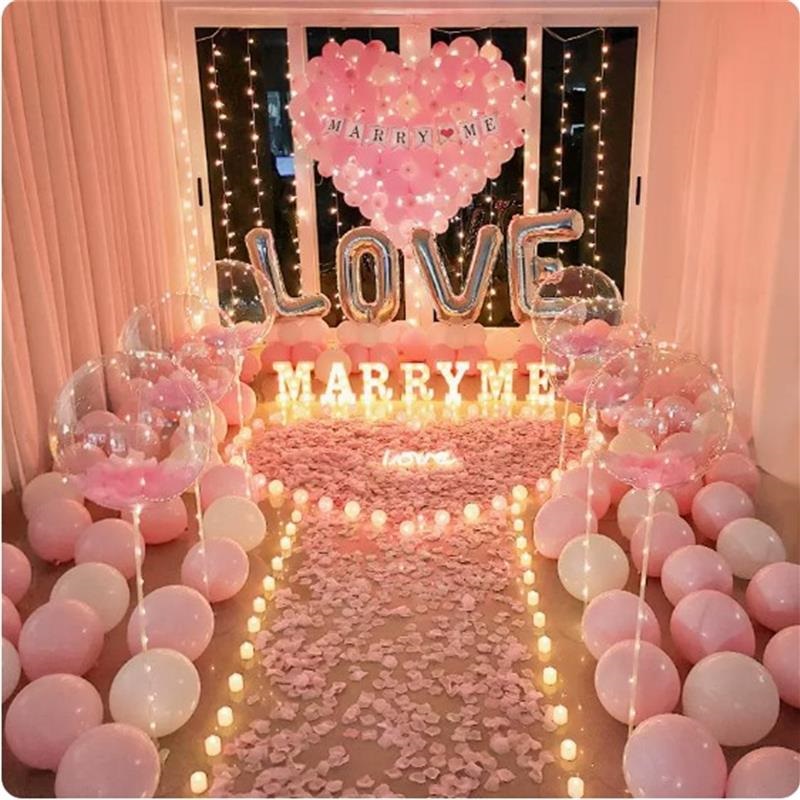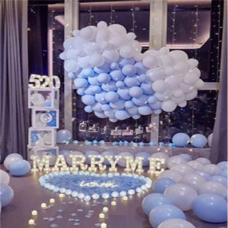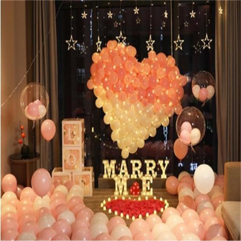 Balloon marriage proposal arrangement scene atmosphere sense indoor love romantic surprise led light marriage proposal MARRYME light net red