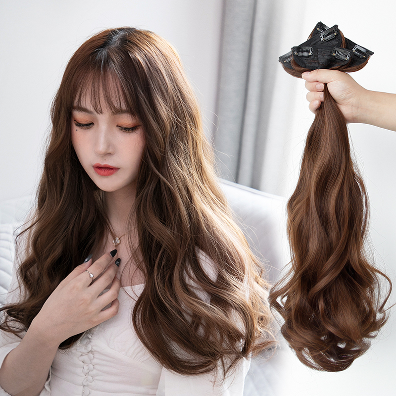 Wig female long hair wig piece female summer three piece long curly hair increase long hair big wave one piece hair extension piece