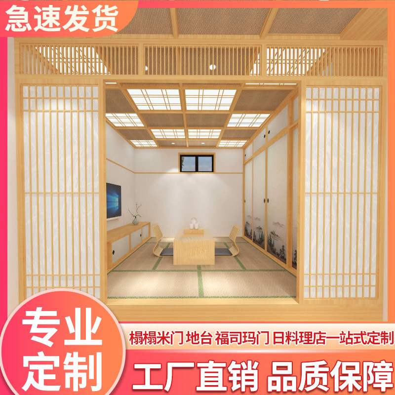 Japanese-style lattice door sliding door tea room partition door tatami and room door whole house custom restaurant solid wood sliding door