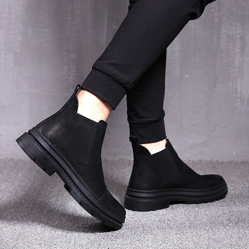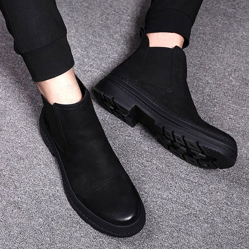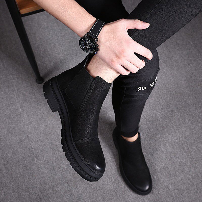 Net Red Black New Pint High Cylinder Martin Boots Male Spring Autumn leather Inn Wind Chelsea Winter Cavet Boots Tide