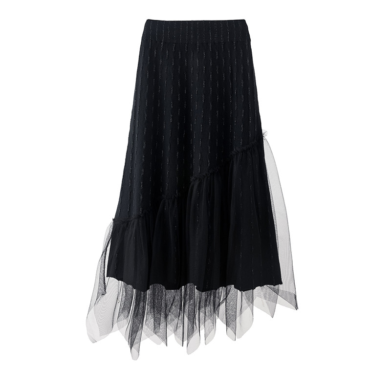 Knitted skirt women's autumn and winter mid-length version mesh stitching bright silk wool skirt women's 2021 autumn half-length wrap skirt