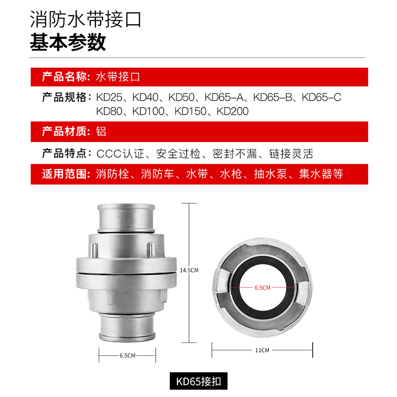 Fire hose connector 65m calibre 2 5 inch water pipe Water bag Interface Fire hydrant Inner buckle Type of buckle Fire fighting equipment
