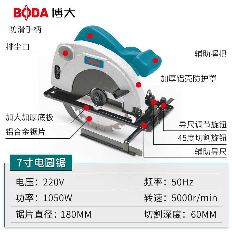 BOGGAO Circular Saw machine 7 inch household cutting machine handcutter woodcutter saw blade saw disc saw