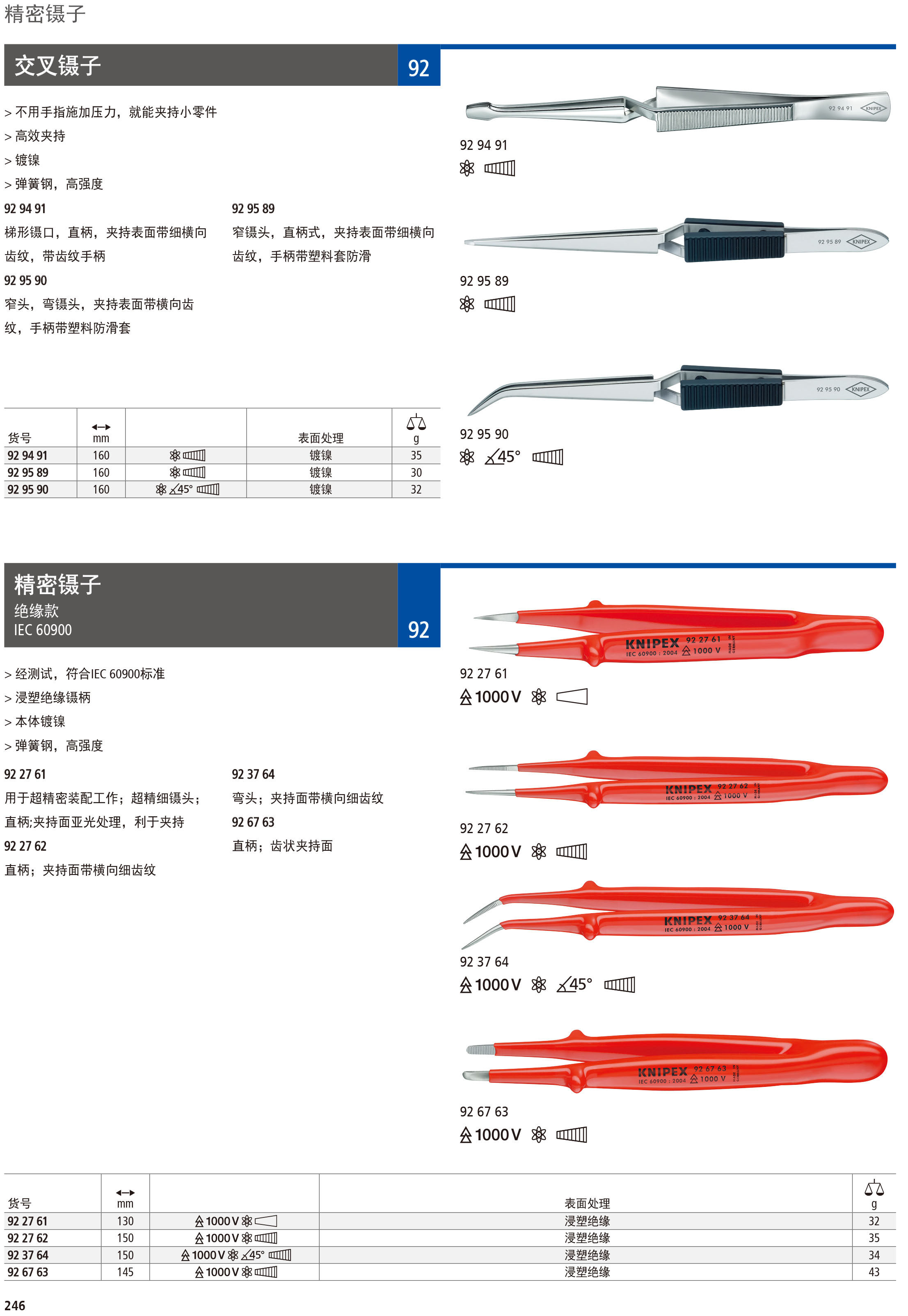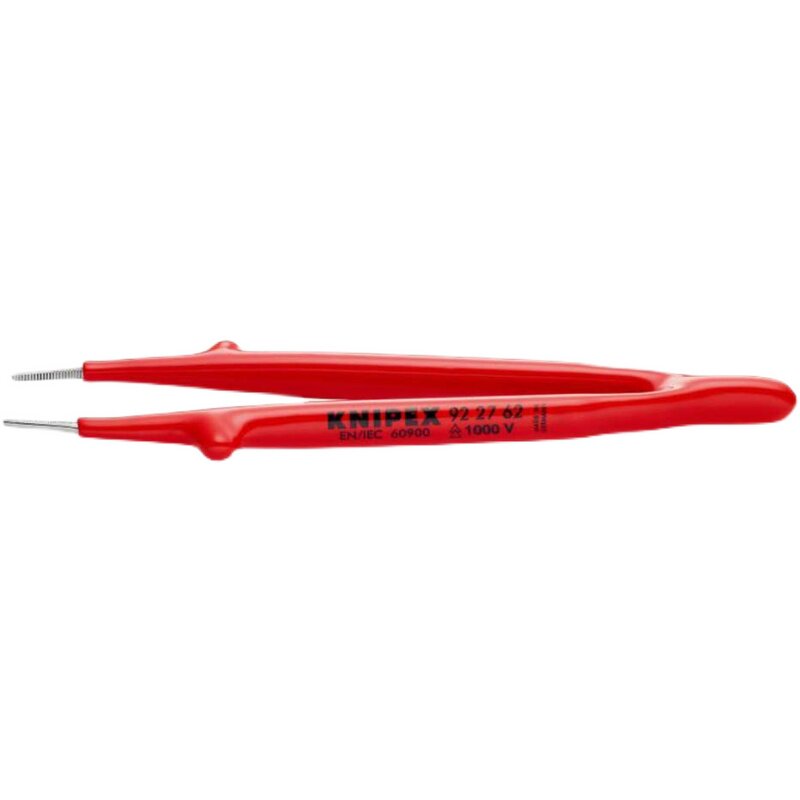 German Kenny Parker insulated precision tweezers knipex92 27 62 clamping surface with horizontal tooth pattern straight head